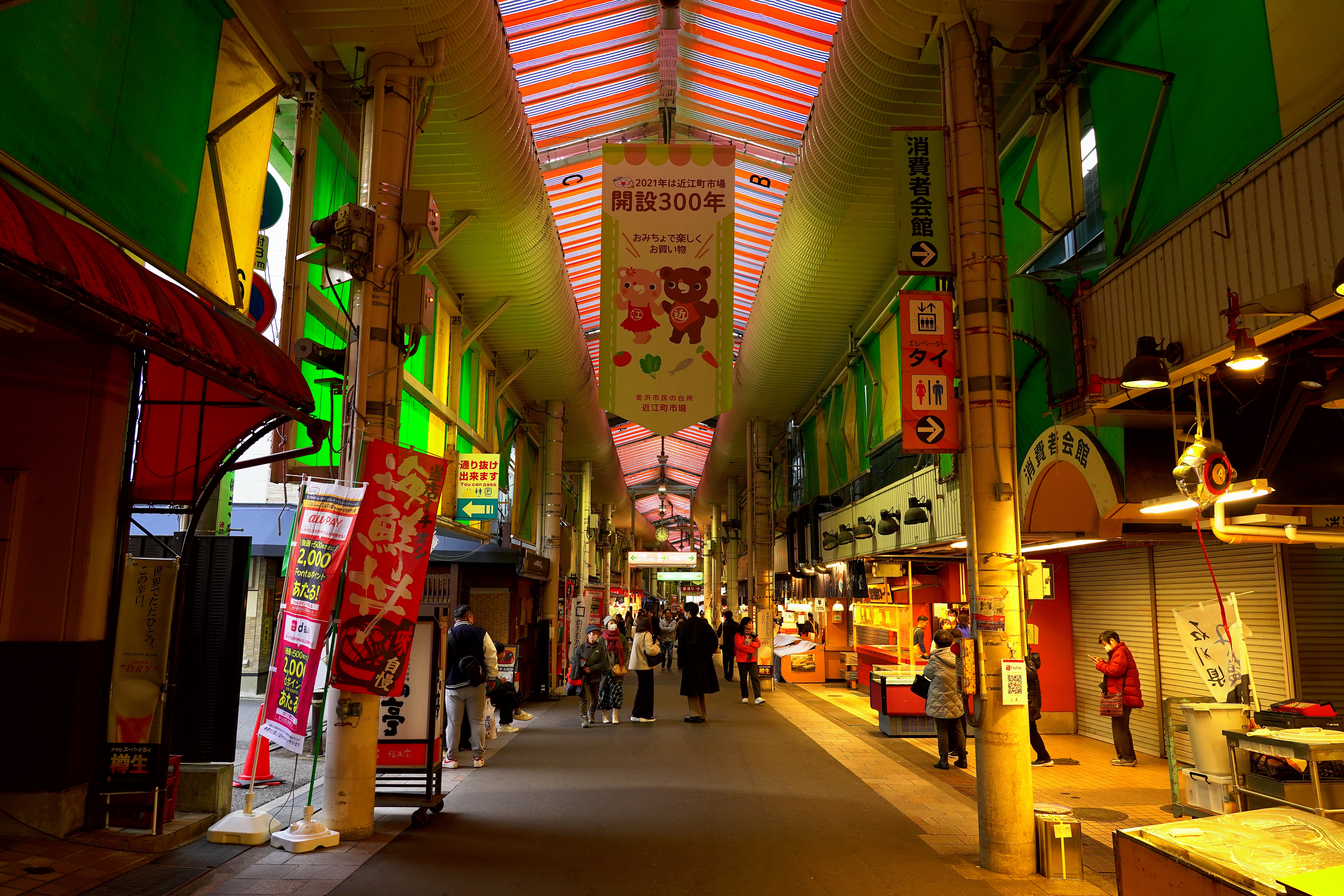 전날 문닫은 가게만 봤었던 오미초 시장이었는데, 이른 저녁이라 그런지 영업을 하는 곳이 많이 있었습니다. 시장에 있는 식당에서 이른 저녁을 먹을까도 생각했었지만 제가 긍정적인 반응을 보이질 않아서 패스했습니다. 다음에 일본 여행일 가서 이런 곳을 들르게 된다면 한 번 쯤 도전해보는 것도 좋지 않을까 싶습니다.