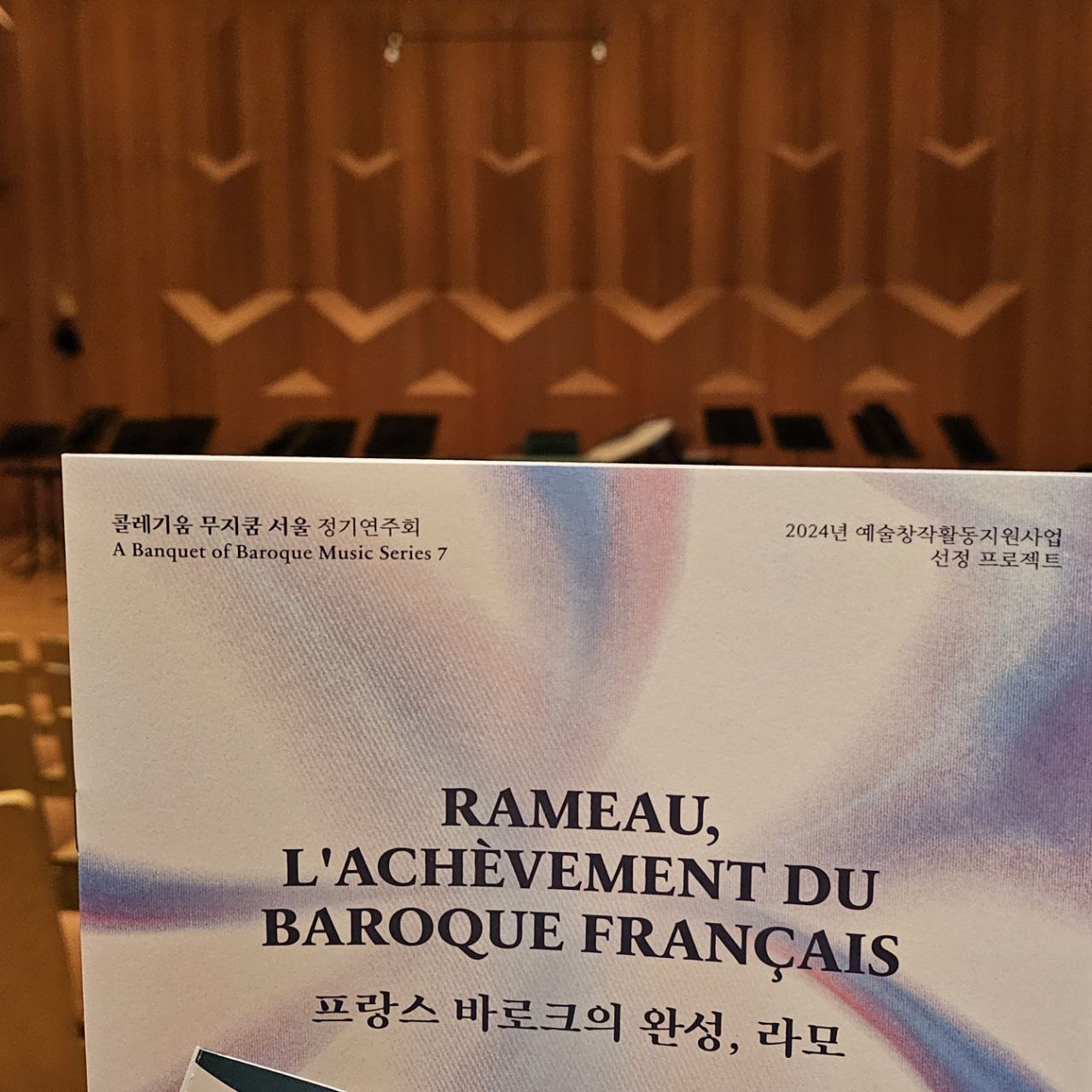 작년에 이어 올 해도 콜레기움 무지쿰 서울 정기연주회에 다녀왔습니다. 작년 공연에서 앙코르로 오늘 공연의 프로그램에 대한 힌트를 주었고, 역시 그에 맞게 오늘 공연은 라모의 곡들로 프로그램의 구성되어 있었습니다. 바로크 곡들을 종종 듣긴 하지만 알고 있는 작곡가는 그리 많지 않다고 생각하는데, 라모는 그중에서도 꽤 자주 듣고 또 좋아하는 작곡가입니다. 그 계지는 마크 민코프스키의 '상상의 교향곡' 음반을 통해서였고, 오늘 연주된 곡 중에서 해당 음반에 수록된 곡도 하나 있어서 무척 반가웠습니다.