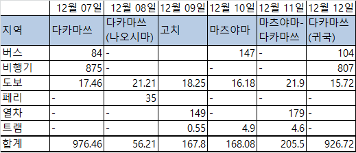 또한 일본 여행 마지막 날 공항으로 갈 때는 늘 열차를 타고 갔었기에, 당연히 시코쿠에서도 그럴 것이라고 생각을 해서 '올 시코쿠 레일 패스' 4일권을 구입했었는데, 다카마쓰 공항은 열차로는 접근이 안되어서 결국 하루치 패스는 날렸습니다. 금액 계산을 해보니 패스를 구입했을 때나 안 했을 때나 큰 차이가 없긴 했지만, 3일권을 구입했다면 경비를 조금 더 아낄 수 있었단 점은 실수였습니다.