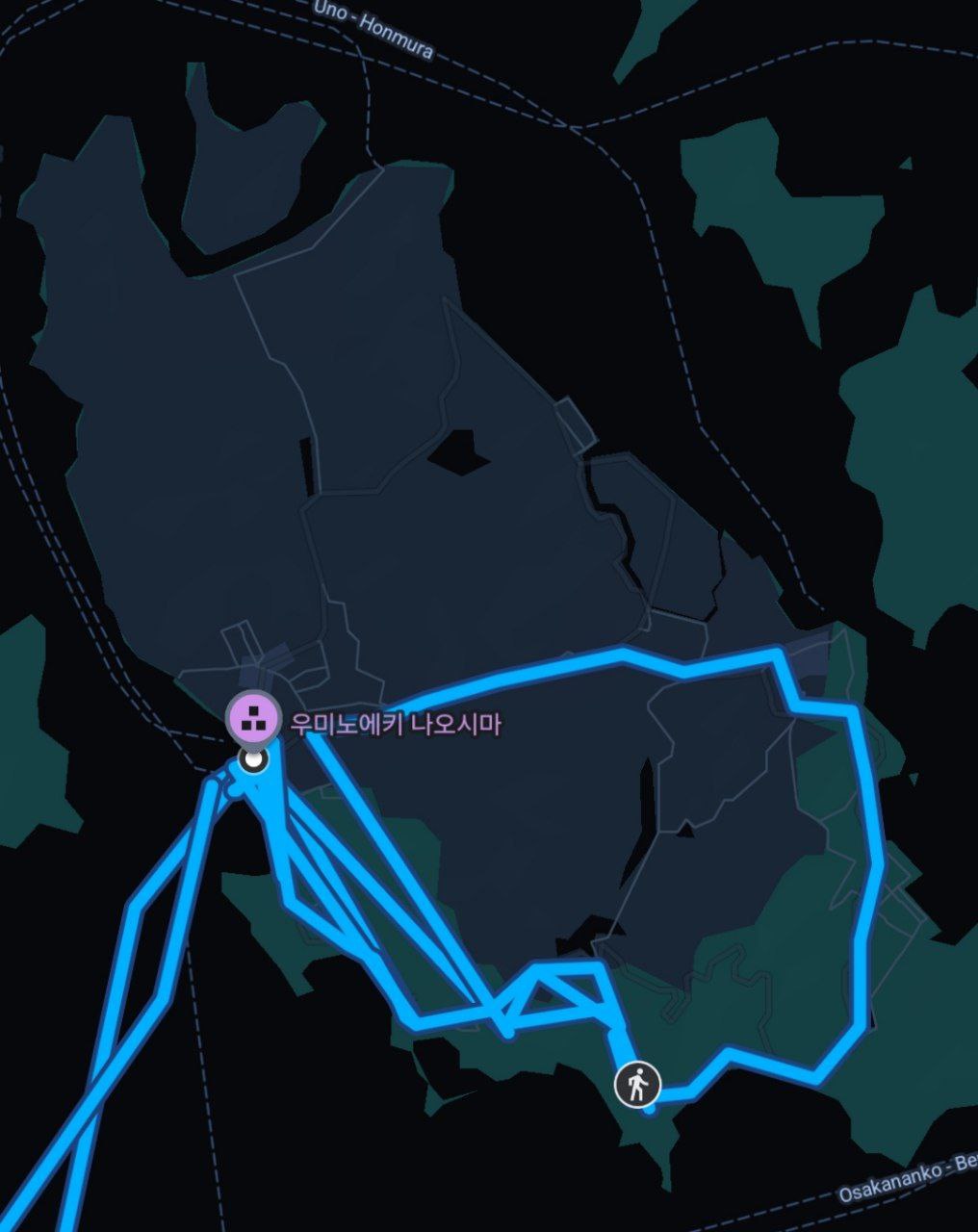 처음으로 하루 일정을 세 번(혹은 그 이상)으로 나누게 되었다. 그만큼 나오시마에서의 하루가 알찼다는 뜻일 것이다. 앞선 포스팅에서는 우리가 동쪽에 있는 '家プロジェクト(이에 프로젝트)'와 안도 뮤지엄을 보러 가는 것으로 단정적으로 말했지만, 사실은 고민을 꽤 했었다. 구글 기준으로는 해당 지역을 찍고 항구로 돌아오면 오후 4시 정도 될 것이라고 나와 있어서, 시간적인 문제는 없었지만 지도를 기준으로 봤을 때 해당 지역을 가기 위해서는 언덕을 넘어야 했는데 어느 정도로 경사가 큰지는 초행길이기에 알 수 없었고, 동생이 체력적으로 감당을 할 수 있을지도 장담할 수가 없었다.