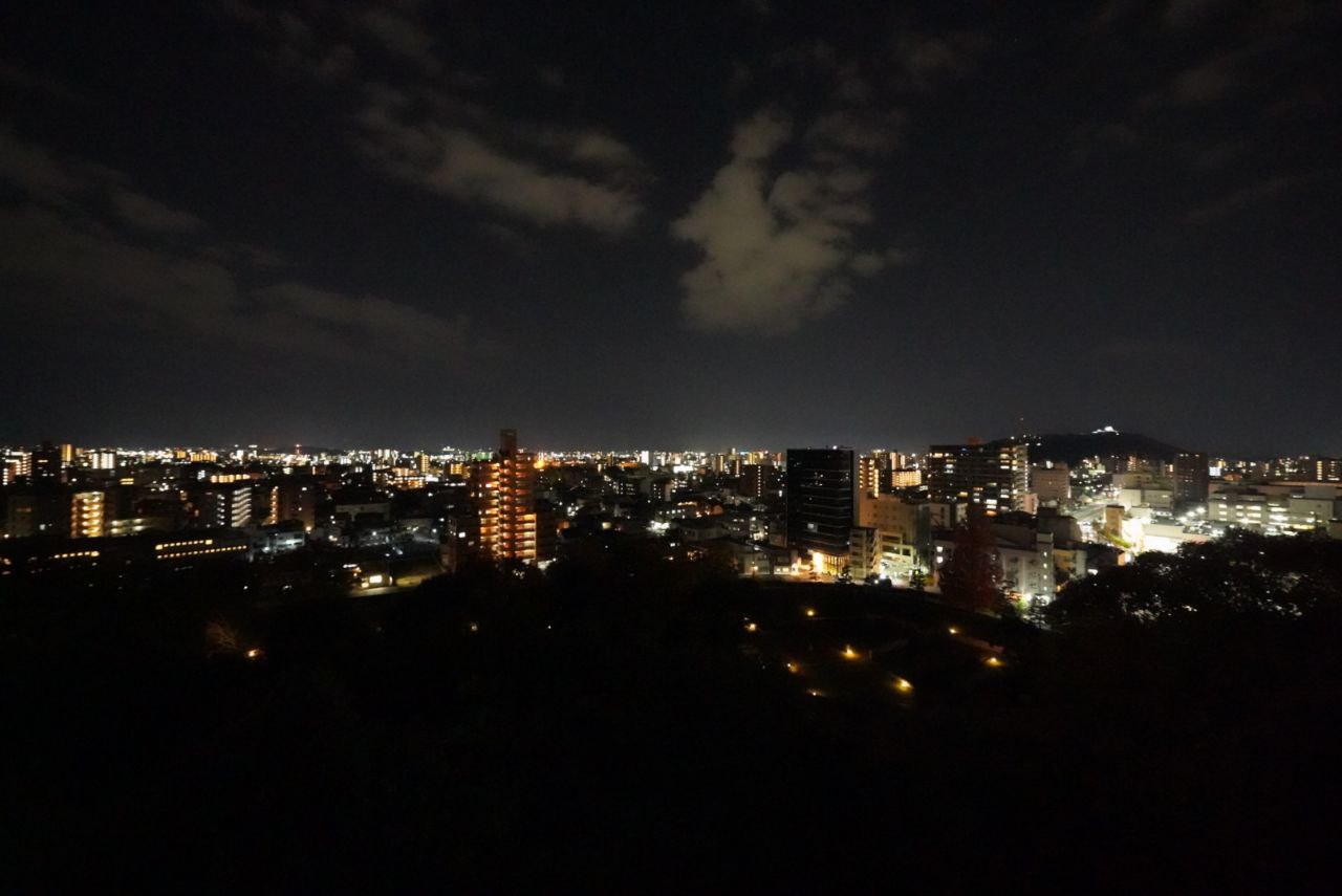 공원 꼭대기에 전망대가 있어서 잠깐 올라갔다. 바람이 많이 불어서 헨드헬드로 마츠야마의 야경을 찍어보았다.