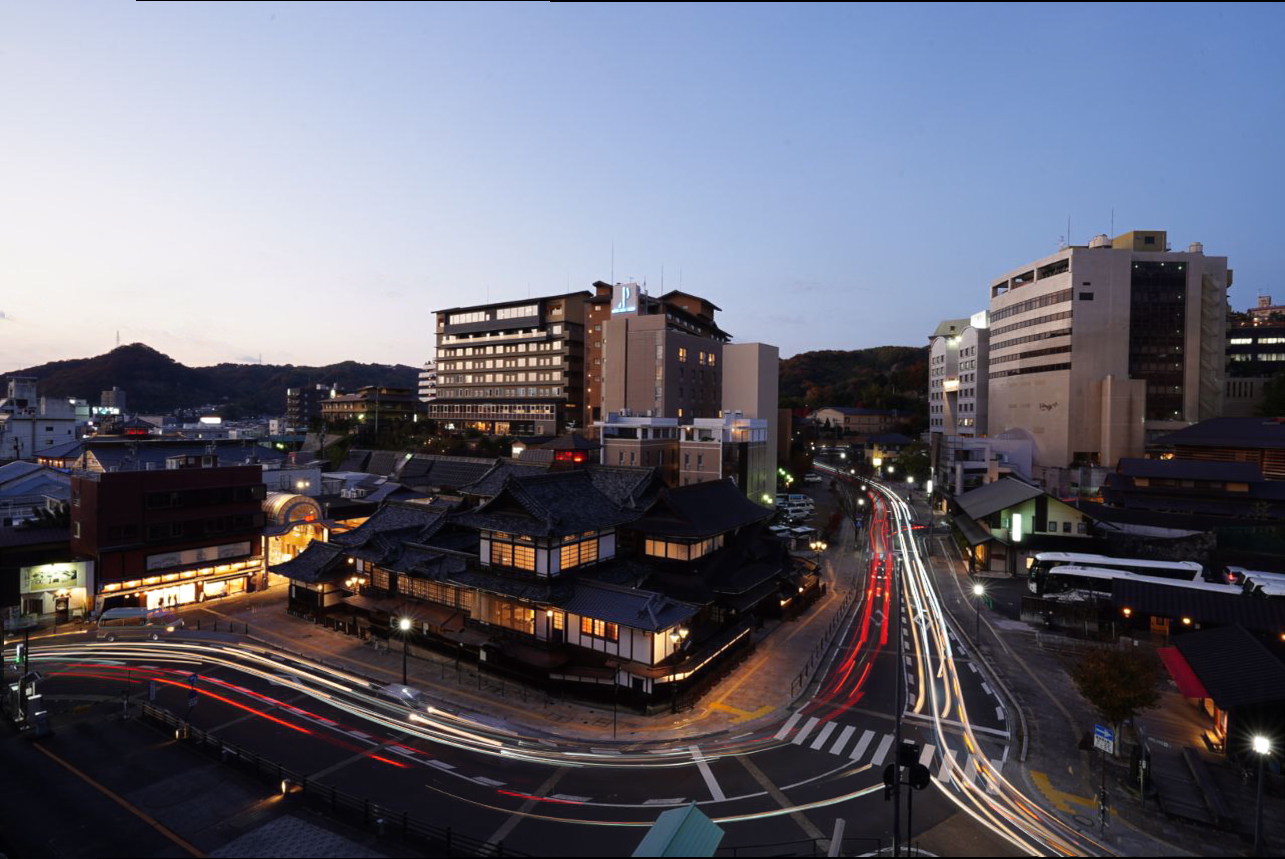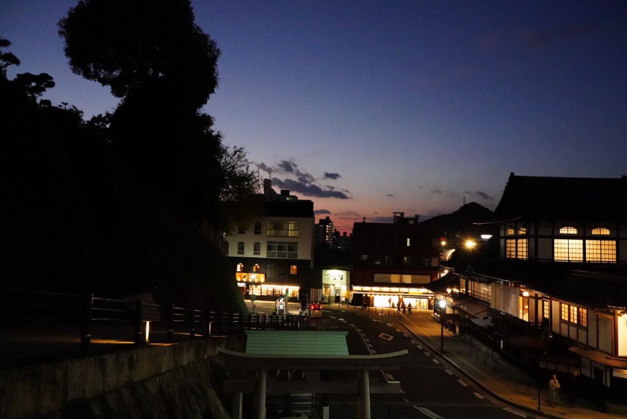마침, 일몰 시간인 데다가, 도고 온천 주위로 차량이 오가는 것을 보고 장노출 사진을 찍어봐도 좋을 것 같단 생각에 시도를 해봤다. 실제로는 이렇게 차량이 많이 다니지는 않고, 여러 장(10장) 촬영해서 합친 것이다. 대충 작업한 사진임에도 그럴듯한 결과물이 나왔다.