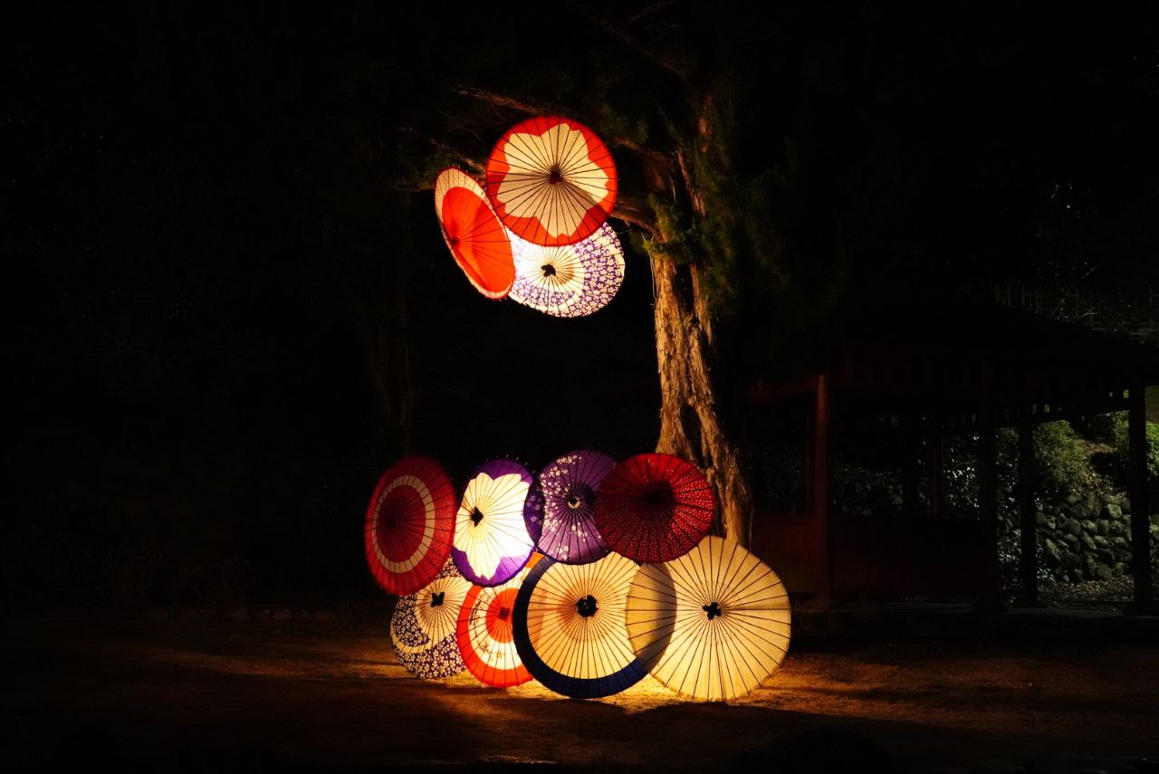 주위에 산책을 다니는 사람도 없는 고요한 곳이었지만, 나름대로 예쁘게 꾸민 곳들이 있었다. 특히 일본 전통식 우산과 조명을 가지고 예쁘게 꾸민 곳이 시선을 사로잡았다.