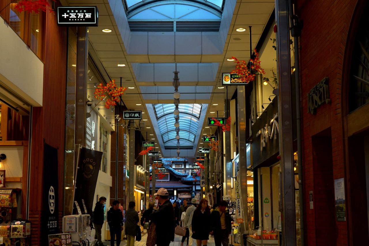 도고 온천역에 도착. 도고 온천 본관이 바로 앞에 있는 것은 아니고, 아케이드 상점가를 거쳐가야 본관이 나온다.
