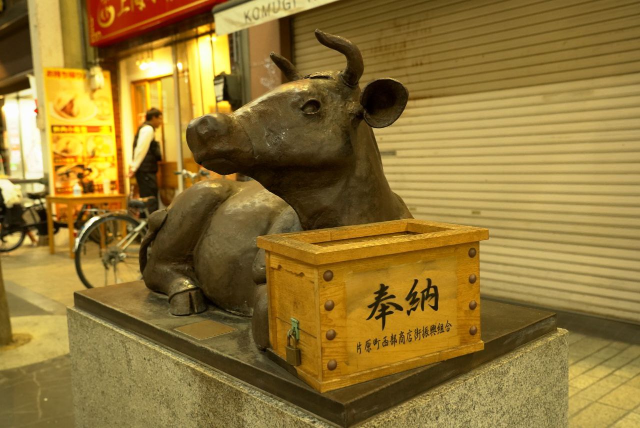 단순한 소 동상인 줄 알았는데, 이곳 상인 연합회의 모금함을 겸하고 있다.