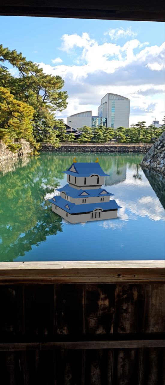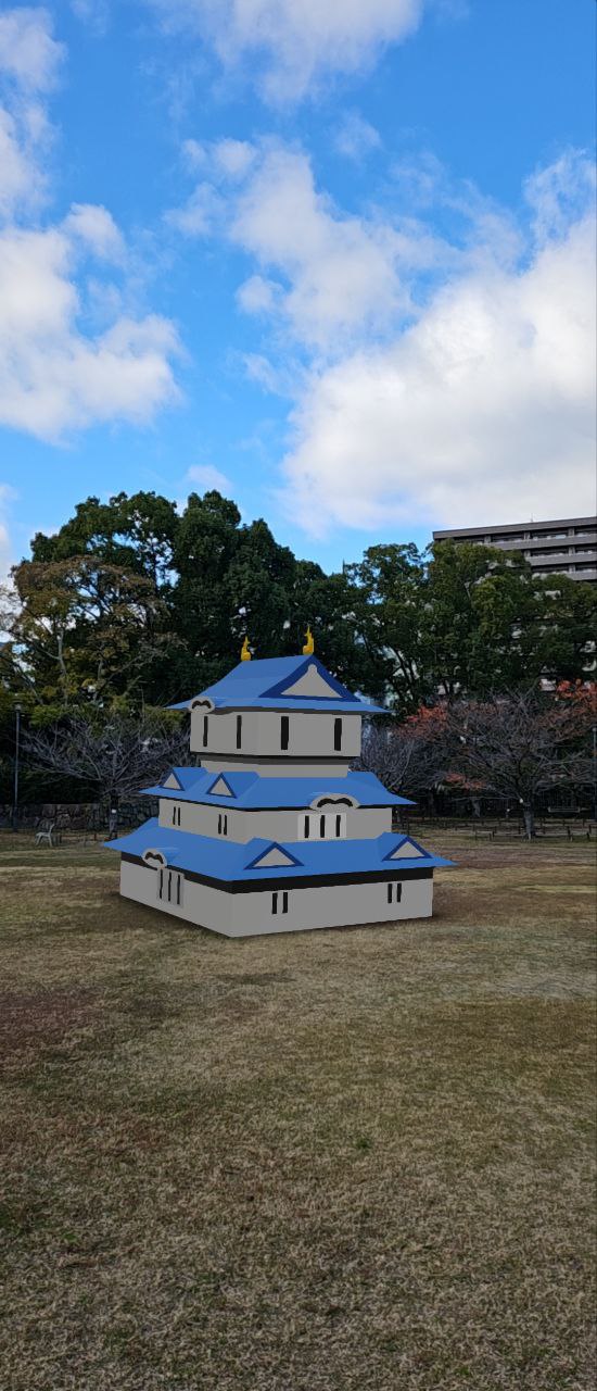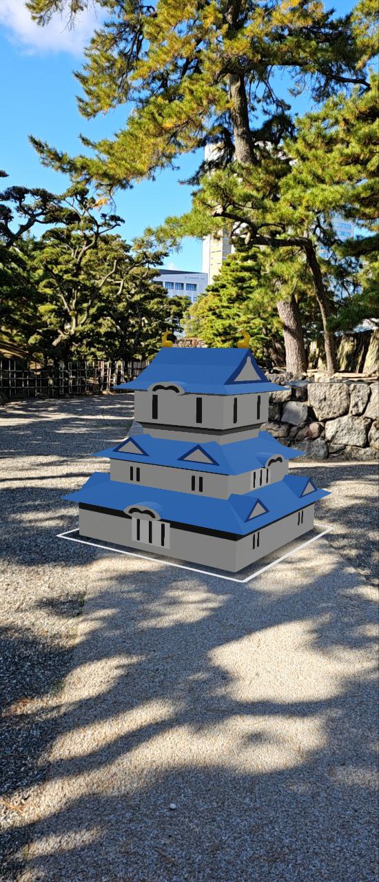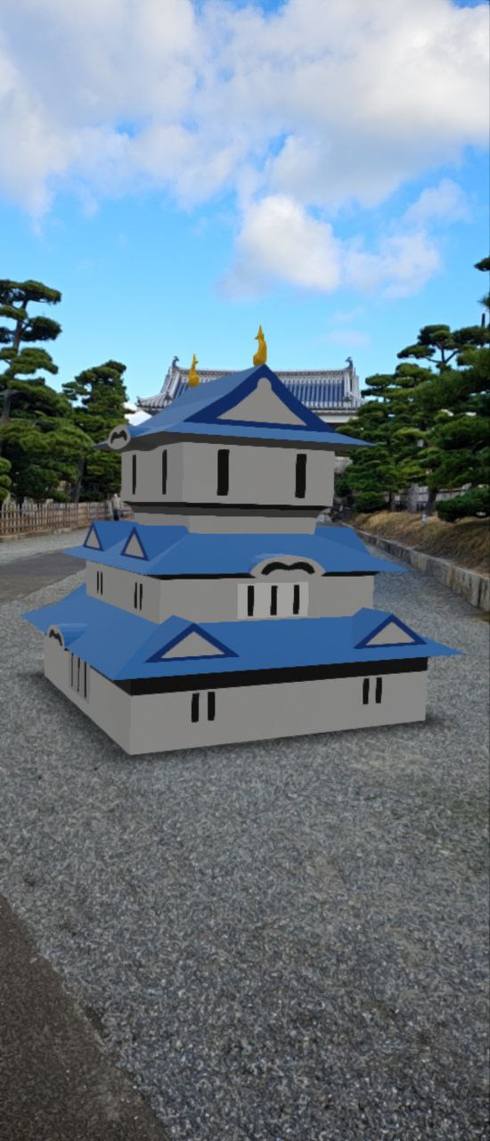 이렇게 AR을 활용해서 가상의 천수각을 세울 수 있는 기능을 제공하고 있었다. QR코드로 링크를 받은 뒤에 성터 여기저기를 돌아다니면서 가상의 천수각을 세울 수가 있다.