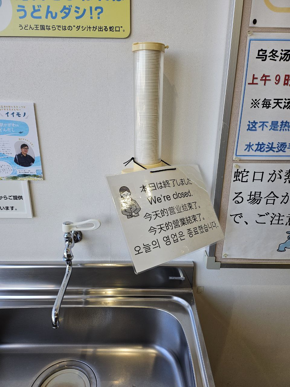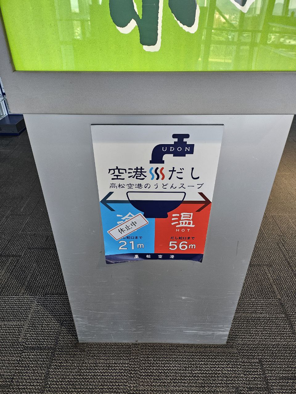 다카마쓰 공항에는, 우동국물이 나오는 수도꼭지가 있다고 해서 한참을 헤매다가 발견했는데, 냉우동과 온우동 국물 모두 맛보는데는 실패했다.