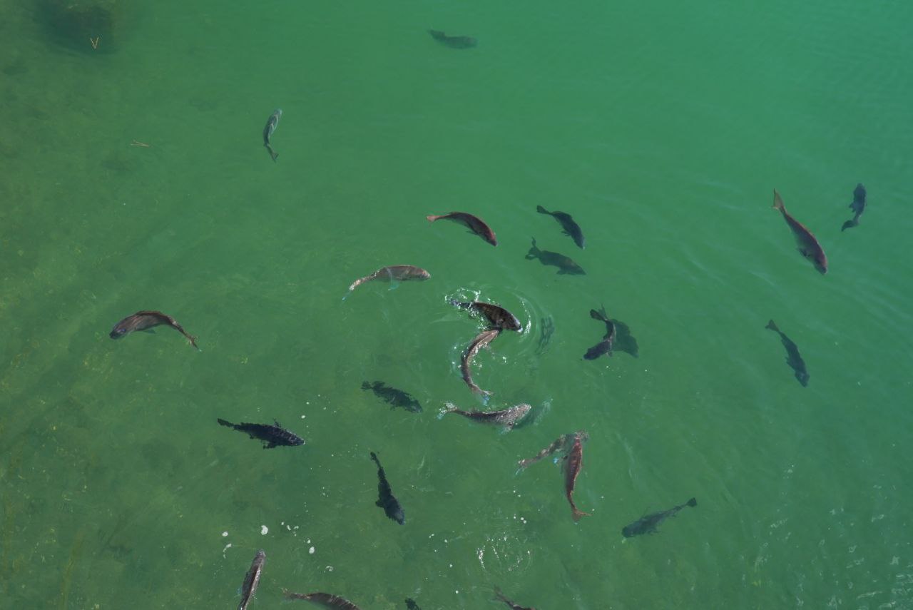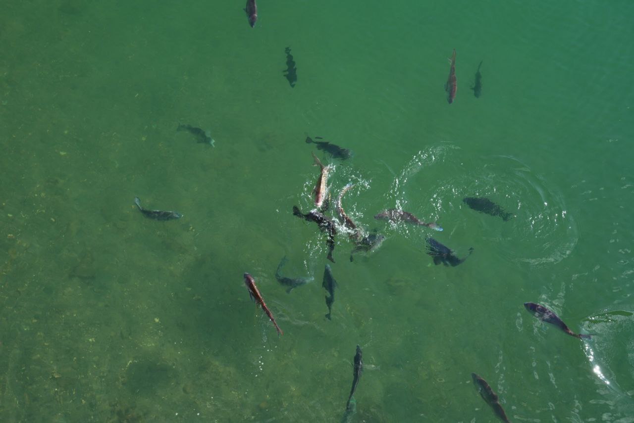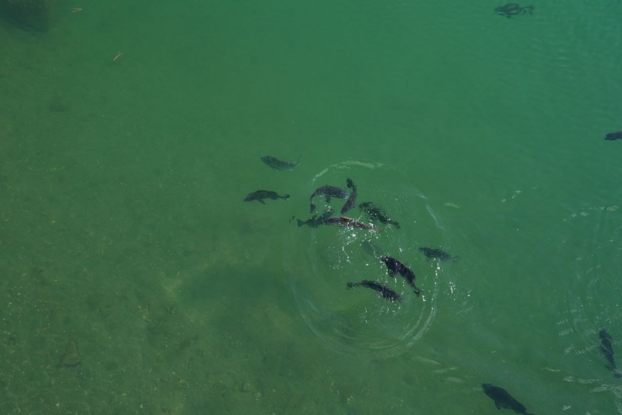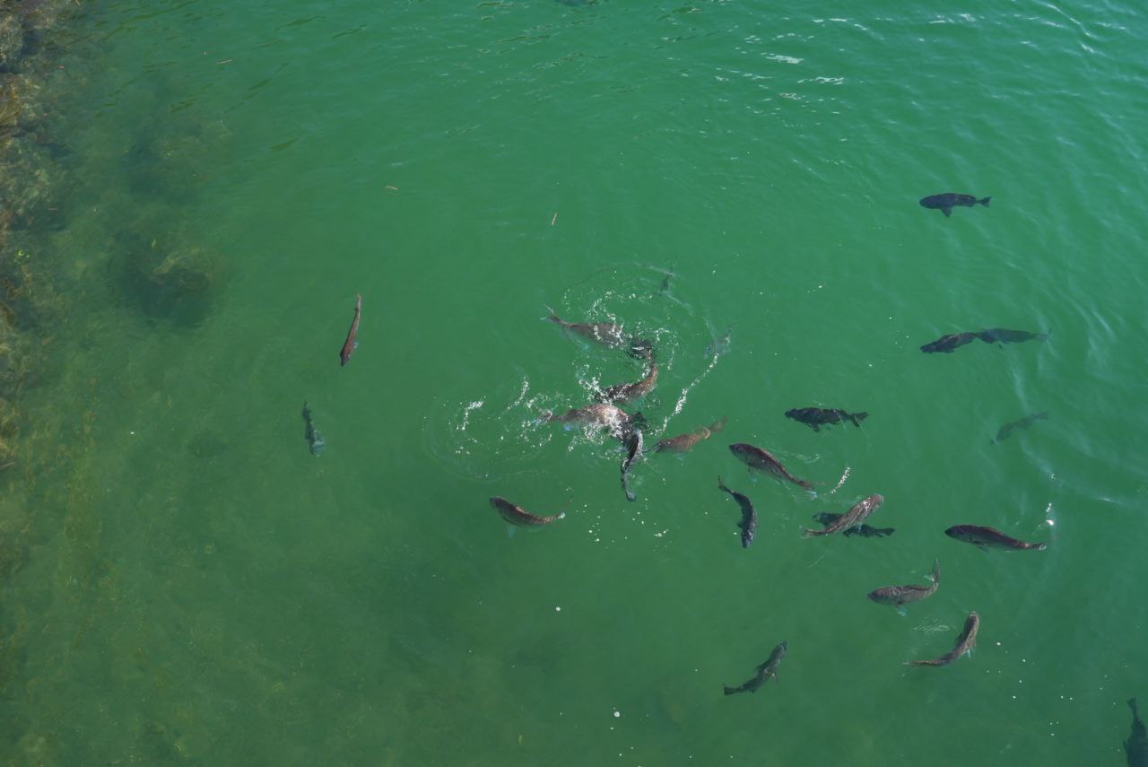 천수각 터로 갈 수 있는 다리에서 먹이를 던졌는데, 먹이가 수면에 닿는 순간 많은 수의 물고기들이 이를 먹기 위해 헤엄치는 모습이 무척 재미있었다. 다들 통통한 것을 보면 꽤나 잘 얻어먹는 것 같다.