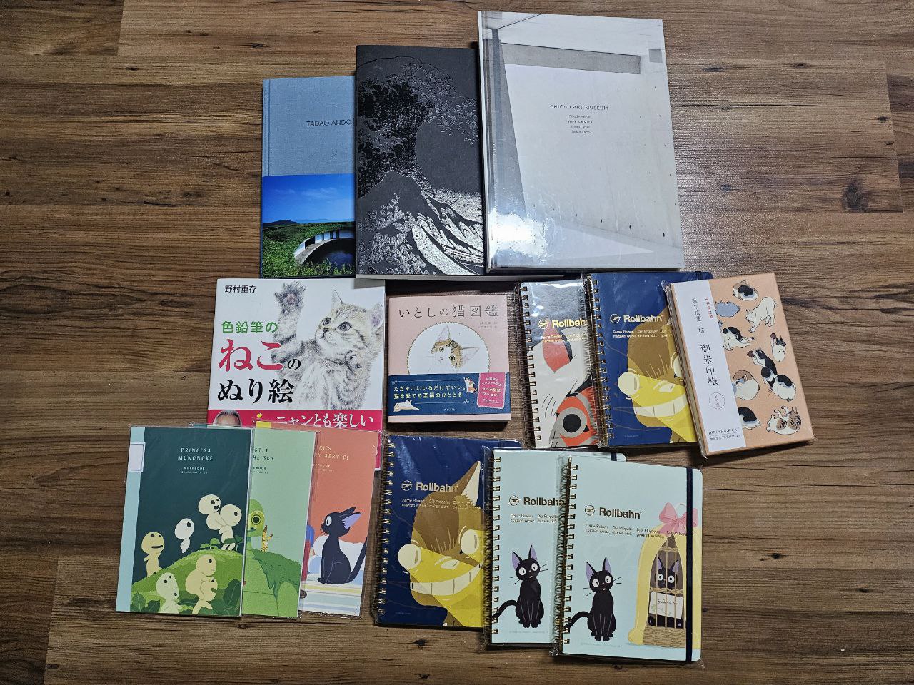 나오시마와 다카마쓰 서점에서 산 책들과, 선물로 나눠줬던 지브리 노트들.