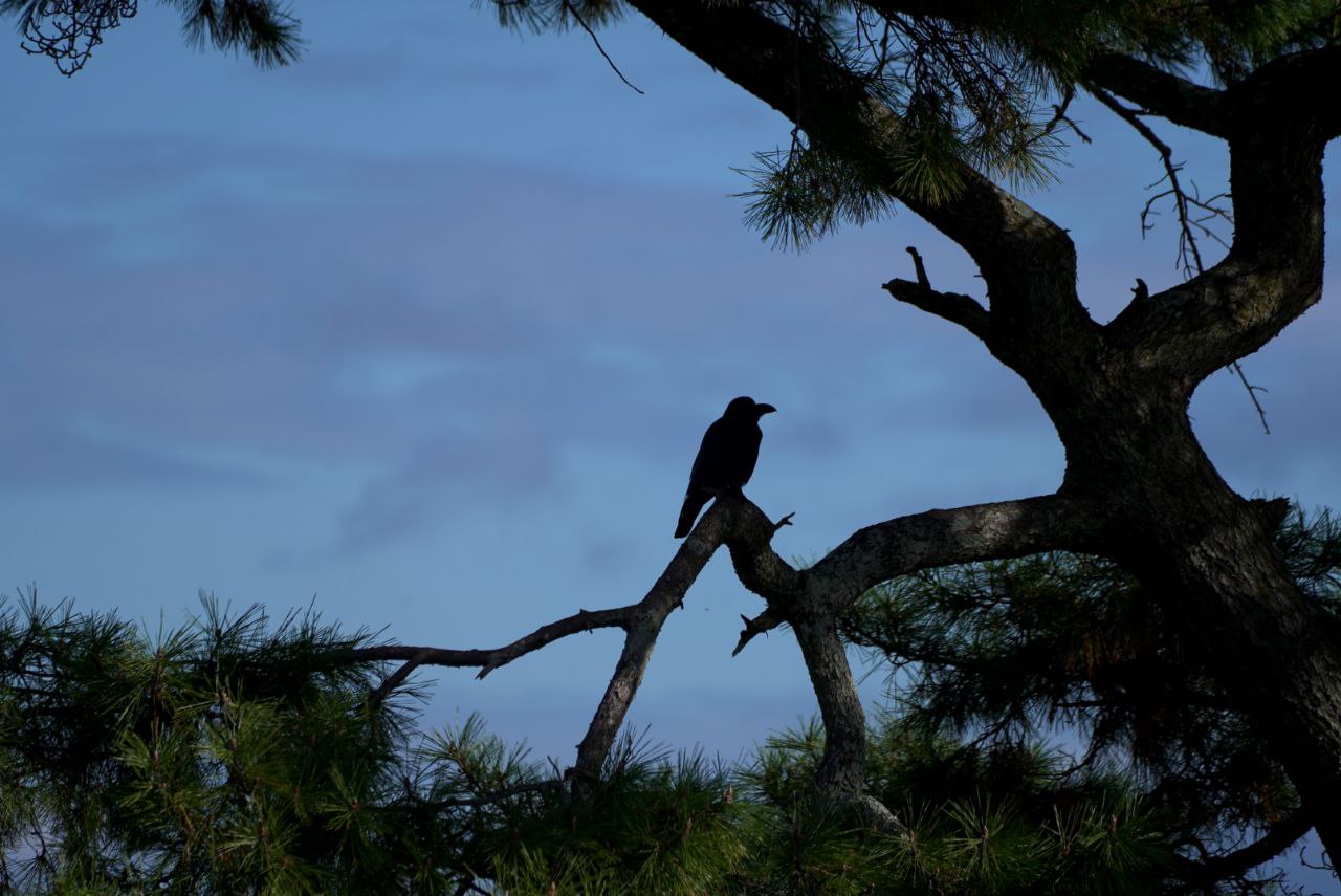 소나무 위에서 까악 거리는 까마귀 포착!