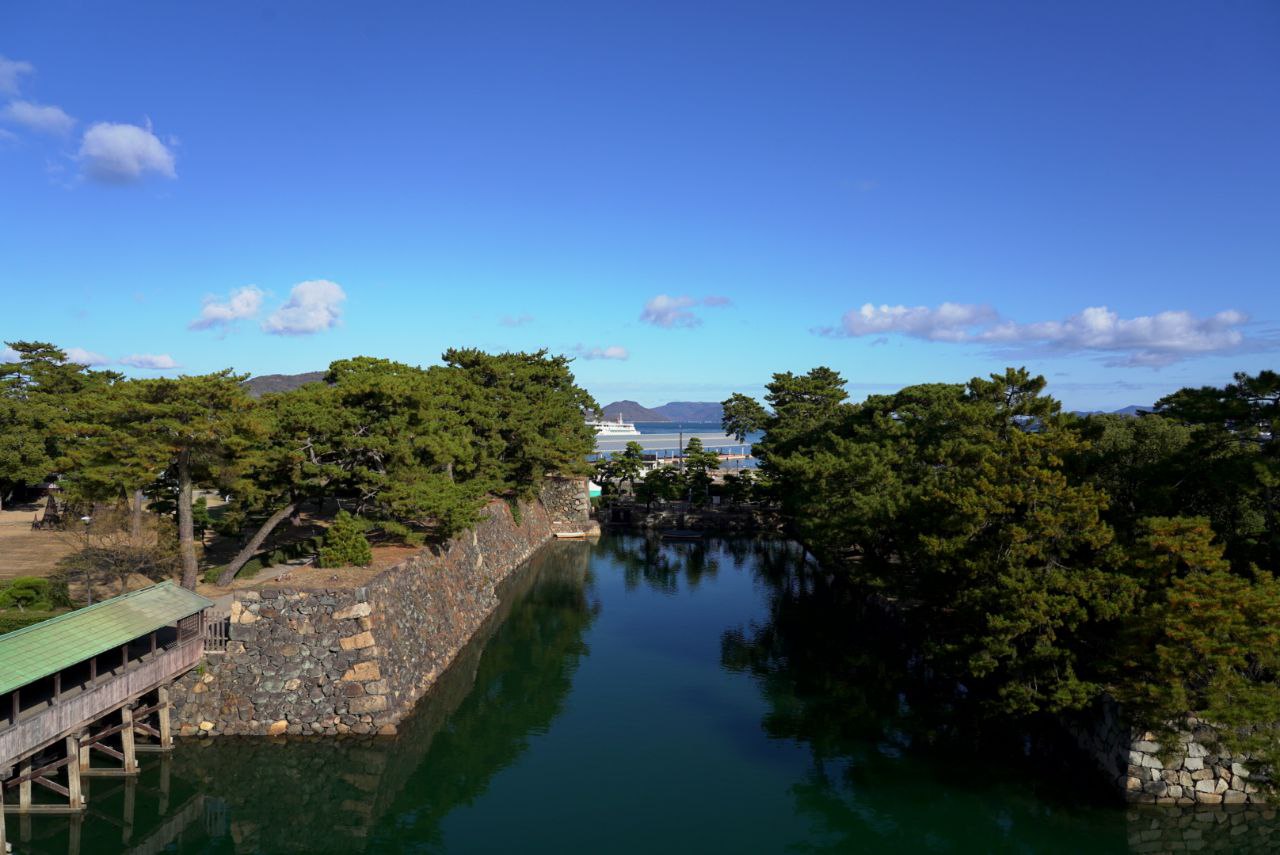 다카마쓰 성의 해자는, 근처에 바다가 있다는 특성을 활용하여 바닷물로 채웠다고 한다.