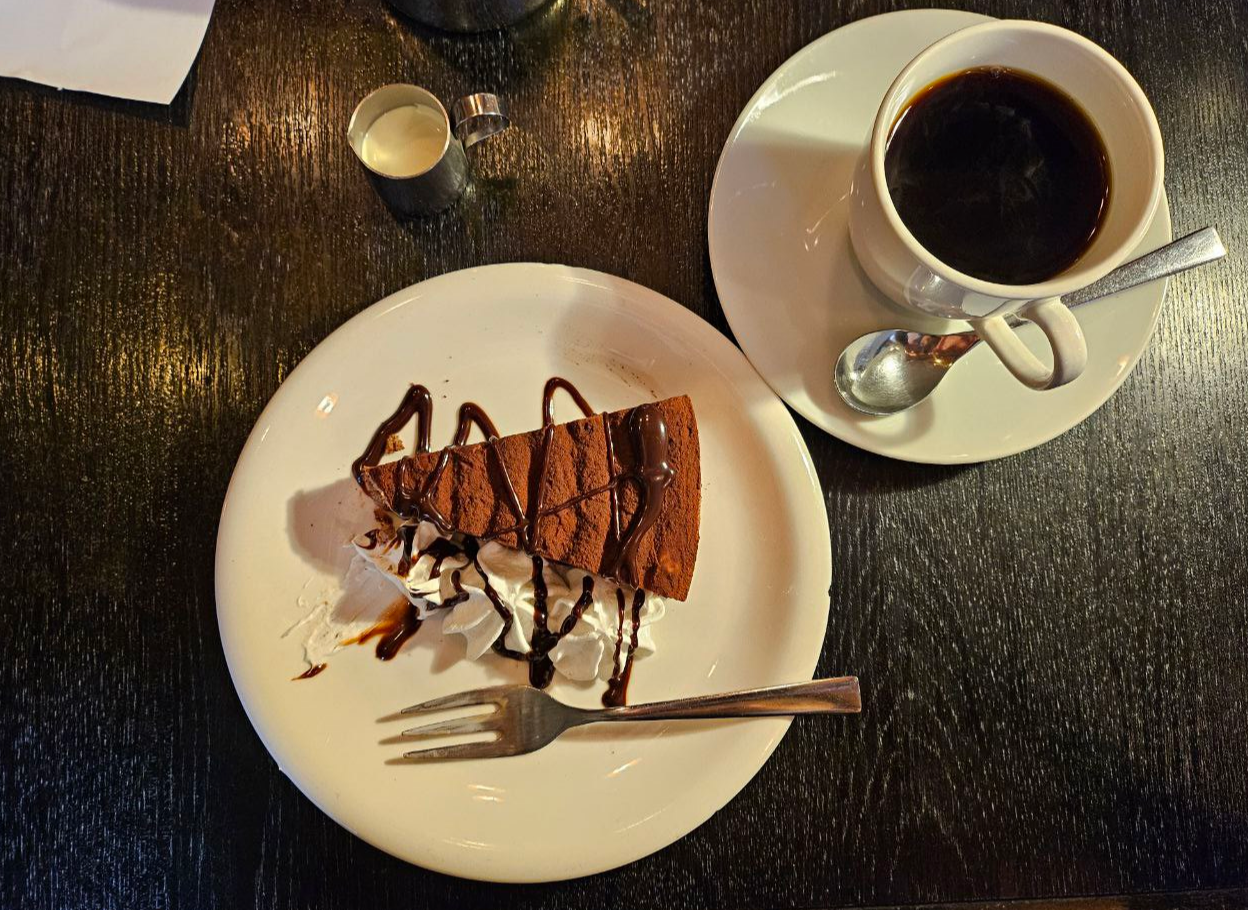 커피뿐만 아니라 식사도 겸할 수 있는 곳이었는지, 주위에서 음식을 먹는 사람들도 여럿 있었다. 나는 카페라테와 초콜릿 케이크를, 동생은 음료 하나랑(뭔지는 기억이 안난다...) 치즈 케이크를 주문했다. 커피도 케이크도 맛있었다. 커피에 우유를 타기 전에 몇 모금 마셔봤는데 '아 차라리 일반 커피(블랜드 커피)로 주문하는 것이 훨씬 좋았을 것 같다.' 싶을 정도로 마음에 들었다. 거기에 영수증을 보니 주문할 때는 커피와 케이크를 각각 주문했는데 세트 메뉴(커피+케이크)로 반영해 주어서 약간의 가격 할인을 받은 것도 만족스러웠다.