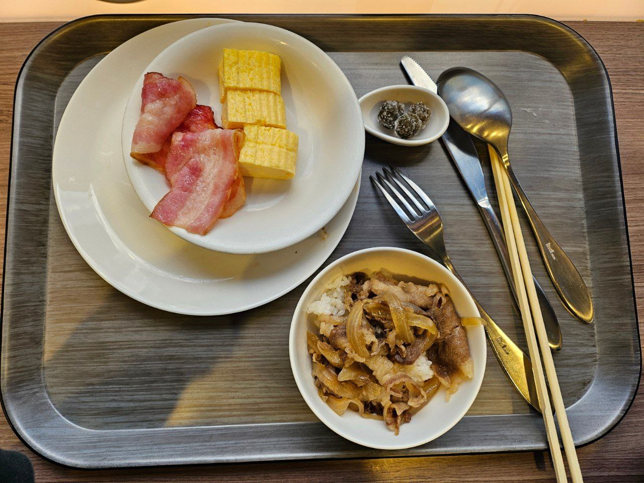 이번 여행에서 처음이자 마지막으로 호텔 조식을 먹었다. 여느 호텔과 같이 뷔페식으로 제공이 되었고, 메뉴 자체가 그리 많은 편은 아니었지만 다카마쓰 근처 쇼도시마의 특산품, 올리브를 활용한 규동과 설탕에 절인 올리브가 정말 맛있어서 사진에서 보이는 것처럼 정말 많이 먹었다.