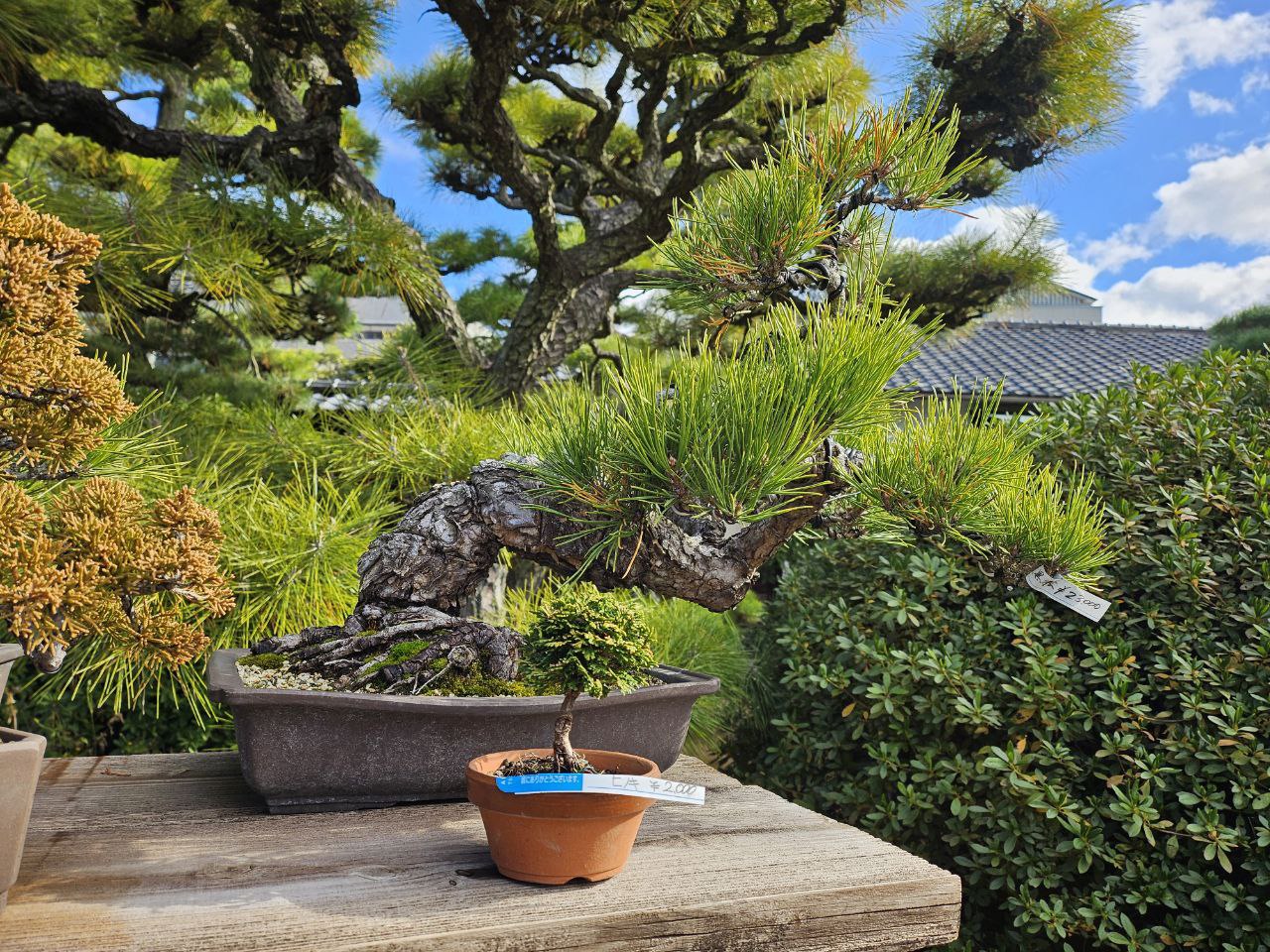 제일 먼저 눈에 들어온 것은 분재들이었다. 분재 전시대 옆에 건물이 하나 있었는데, 이곳에서 분재를 키우는 모양이었다. 옆에 가격표도 적혀 있었는데 크기와 모양에 따라 2,000엔부터 25,000엔 이상까지 다양한 가격으로 판매를 하는 모양이었다. 오른쪽에 보이는 멋진 분재는 23,000엔이었는데 분재를 키우는데 손이 많이 간다고 알고 있어서, 저 정도면 엄청 싸게 파는 것 아닌가? 란 생각도 했다.