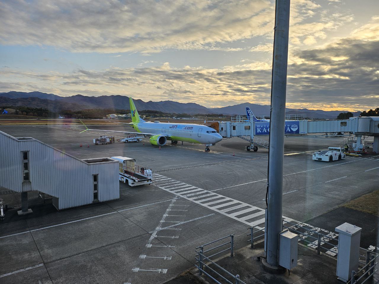 우리를 한국으로 데려다줄 비행기가 열심히 이륙을 위한 준비를 하고 있었다. 마침 일몰시간이라 그런지 서서히 드리우는 풍경이 나름 멋있었다.