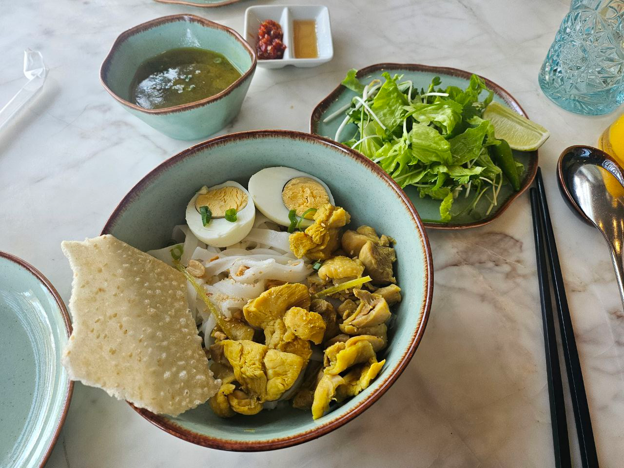 메뉴가 이것저것 있길래 베트남 요리들 중에서 끌리는 것들을 주문했다. 메인 요리는 닭쌀국수. 그 외에도 서양식이나 한식 메뉴도 구비되어 있었는데 굳이 베트남에 와서 양식과 한식을 먹는 것은 좀... 개인적으로 느끼기에 베트남 음식은 한국인들에게 딱히 거부감을 일으킬 요소가 없는 편이다.(고수가 그나마 문 제려나? 근데 그것도 사진처럼 따로 내어준다.)