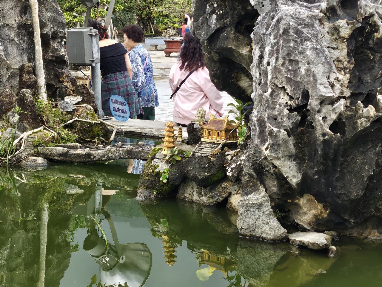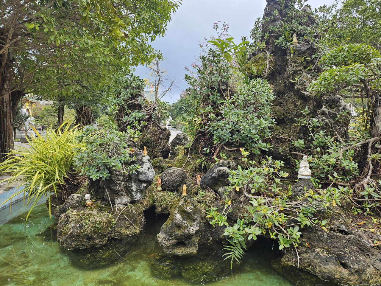 작게 조성된 연못에는 아기자기한 모형 절과 탑. 그리고 불상들이 장식되어 있었다.