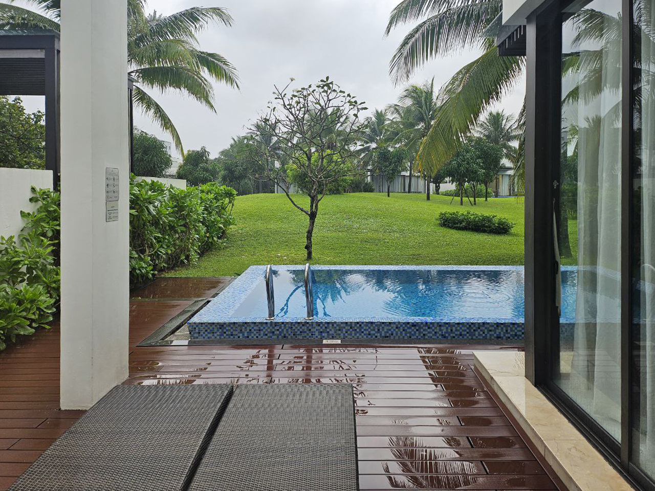 다행히 숙소 내 우산이 구비되어 있어서 그걸 들고 본관으로 걸어갔다.