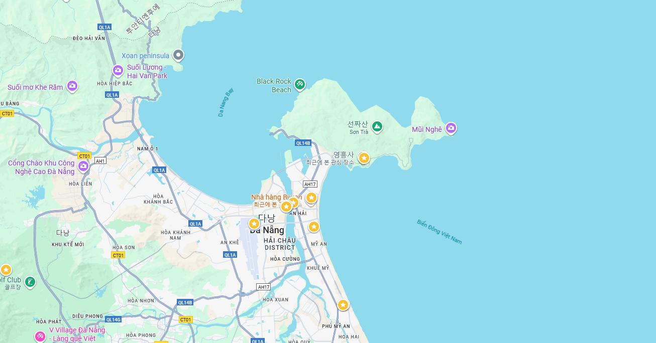 그다지 만족스럽다고 할 수 없는 점심을 먹은 뒤, 향한 곳은 손짜 반도의 영흥사였다. 위의 지도에서 보이는 것처럼 다낭 북쪽에 툭 튀어나와 있는 곳에 위치해 있어서 '반도'란 이름이 붙은 듯했다.