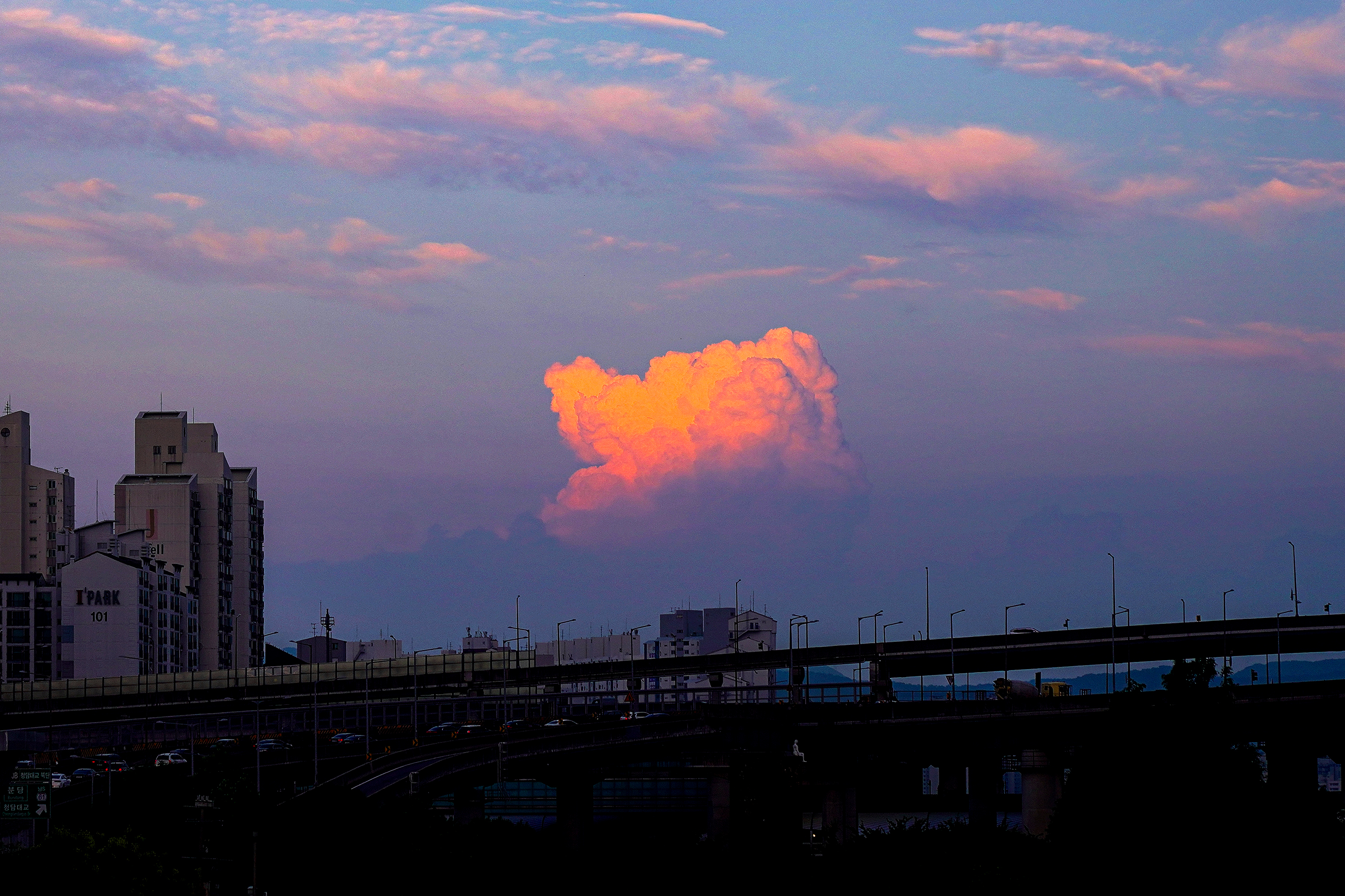 노을을 한껏 머금은 구름의 모습이 무척 예뻐서 찍어봤습니다. 백사금(SEL100400GM)렌즈를 이날 챙기지 않아서 찍고 나서 크롭을 했습니다. 이래서 사진을 찍으러 나갈 때 늘 렌즈를 여럿 챙길 수밖에 없는 것 같습니다.